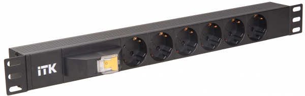 - Блок розеток 6 мест PDU (немец. станд.) с автоматом 1U вход С14 без шнура ITK PH21-6D3