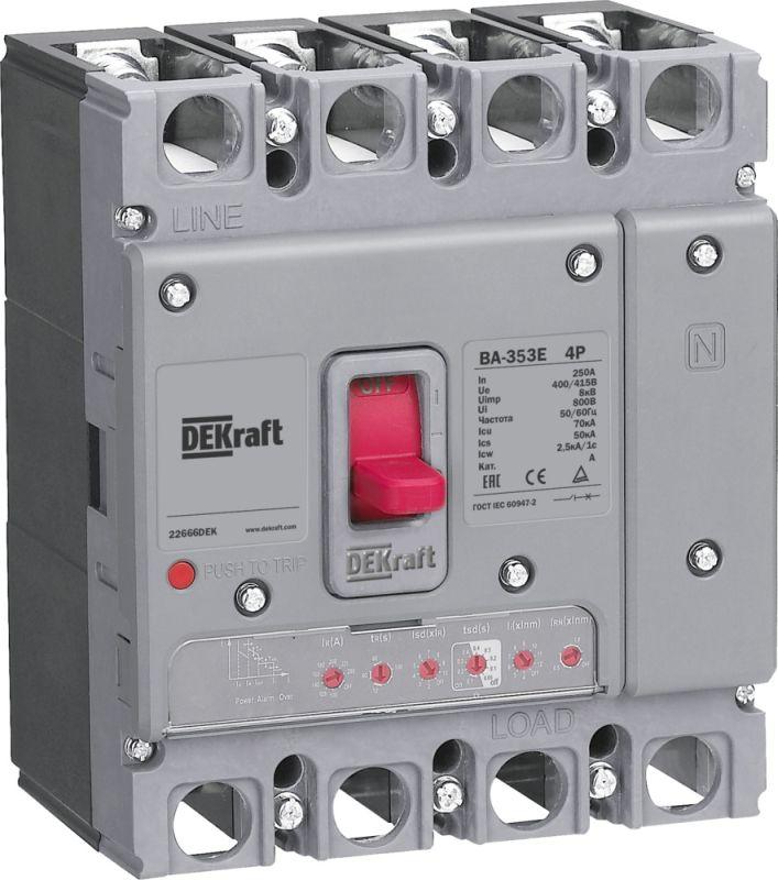 - Выключатель автоматический силовой 4п 250А 70кА ВА-353E электрон. расцеп. DEKraft 22666DEK