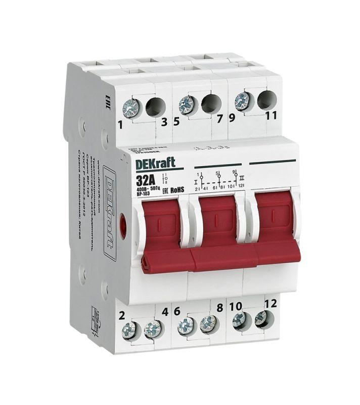- Выключатель-разъединитель трехпозиционный 3P 32А ВР-103 DEKraft 17215DEK